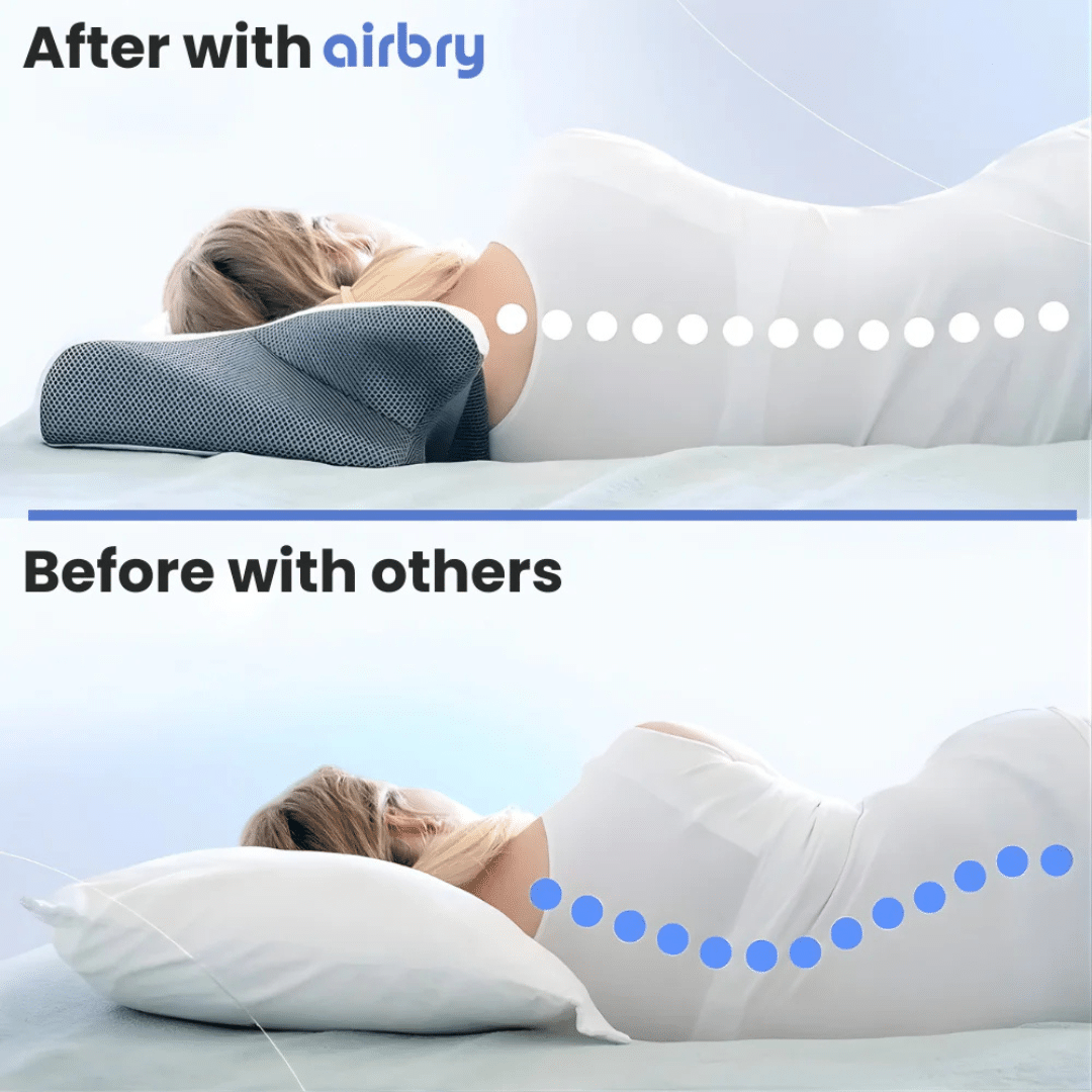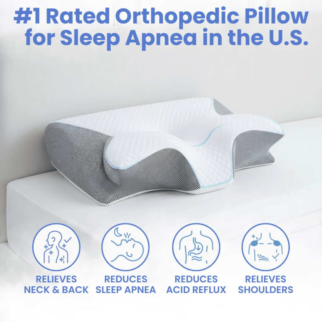 The Airbry Pro Sleep Apnea Pillow is a scientifically designed orthopedic pillow created to support people with obstructive sleep apnea and snoring issues. Its ergonomic contour and premium memory foam provide superior neck and head support, aligning the spine to open airways naturally during sleep. This pillow aims to reduce sleep apnea episodes, decrease breathing interruptions, and minimize snoring for more restful, uninterrupted sleep.