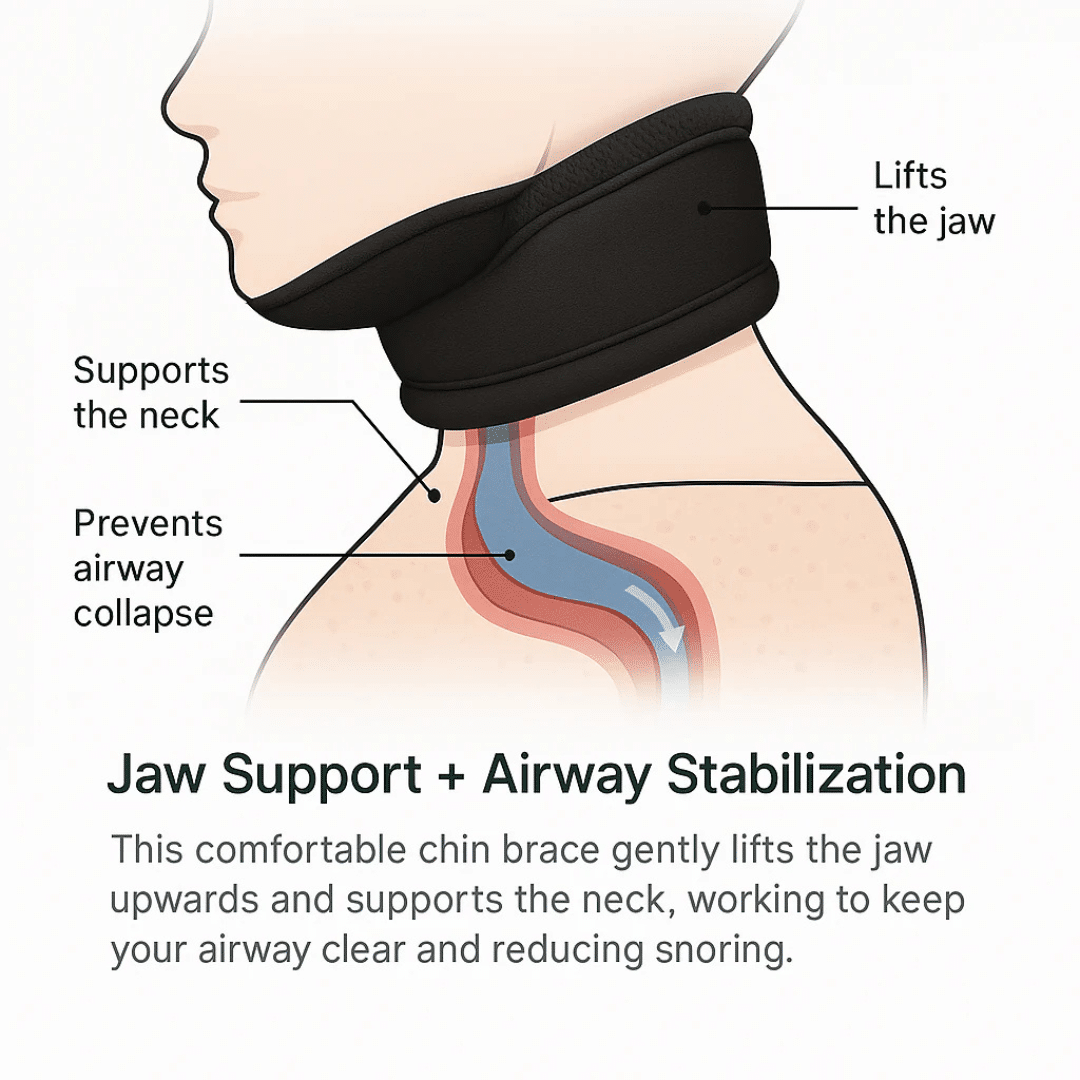 Bloomella works by supporting and gently lifting your neck into optimal alignment while you rest. This ergonomic position helps prevent your chin from dropping toward your chest, which can block your airway and lead to snoring or interrupted sleep. The adjustable fit allows users to customize tightness for maximum comfort and effectiveness. By stabilizing the neck and minimizing movement, Bloomella keeps your airways open, promoting deeper, quieter, and more restful sleep.