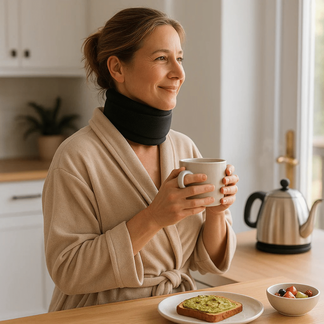 By improving neck alignment and supporting healthy airway function, Bloomella Neck Brace helps deliver quieter nights and greater comfort for people struggling with snoring, mild sleep apnea, or neck aches.