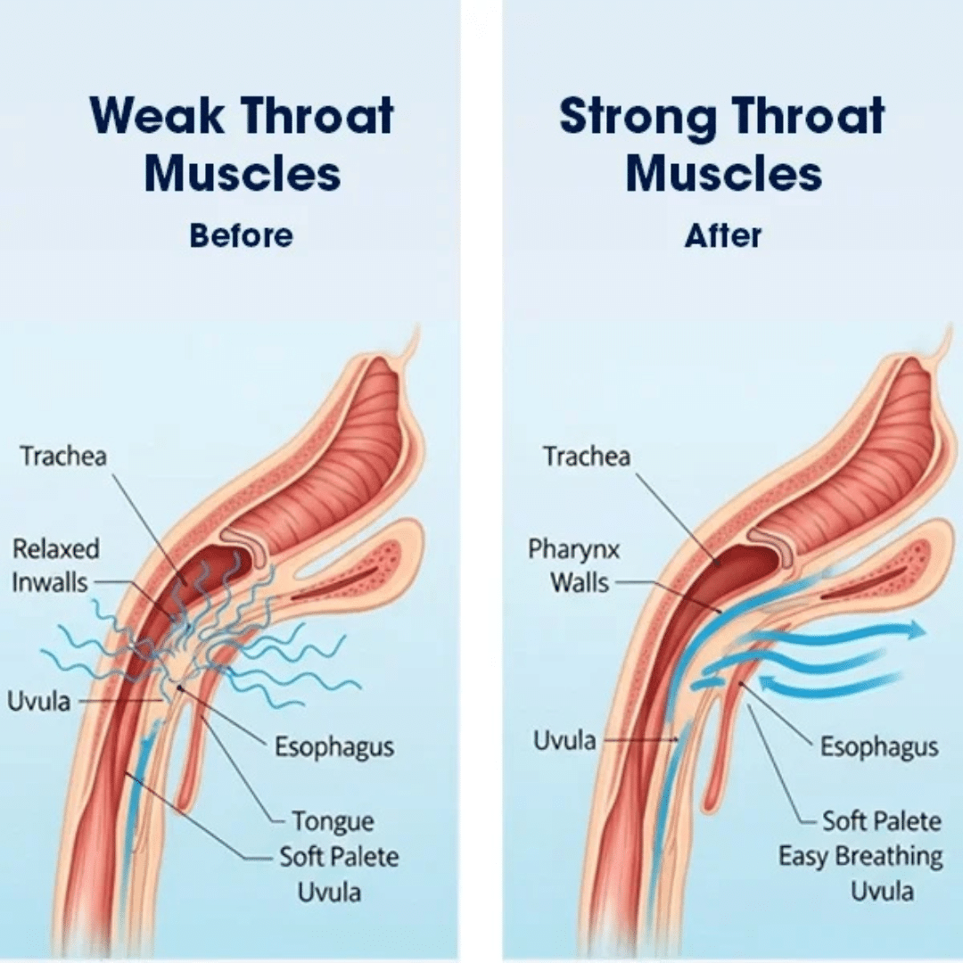 - Addresses the root cause of snoring: Strengthens key airway muscles, not just symptoms.