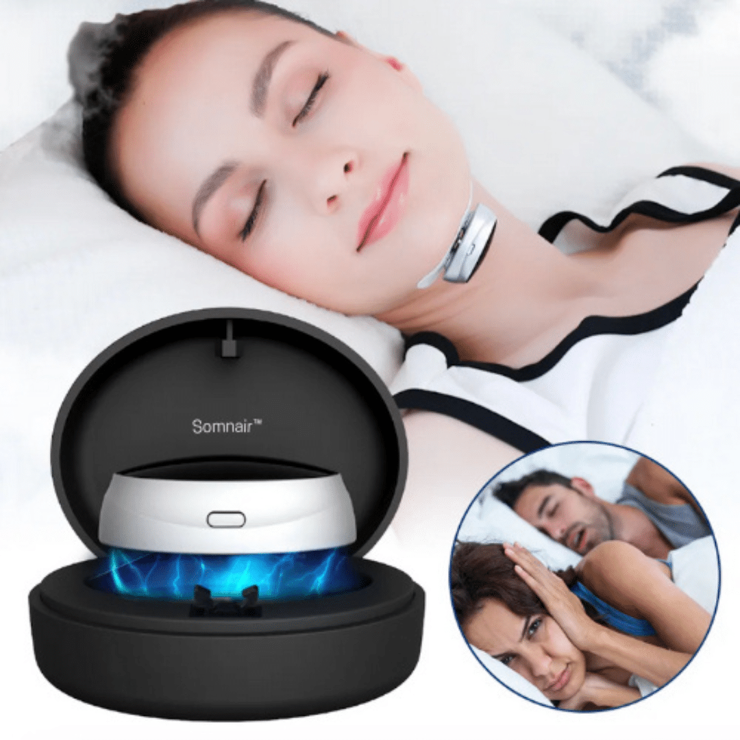 Somnair™ Snoring Trainer is an innovative, non-invasive electronic device designed to address the root cause of snoring—weak throat muscles, specifically the genioglossus muscle that keeps your airways open during sleep. Unlike traditional solutions such as CPAP machines or nasal strips, Somnair™ targets muscle weakness directly, helping users achieve quieter, deeper sleep with lasting results.